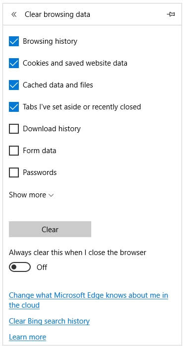 - 'Çerezler ve web sitesi verileri' onay kutusunu seçin.